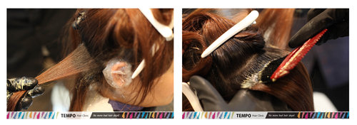 深層洗髮後~~< 調合好色彩>施術開始~~準備分區染髮了!